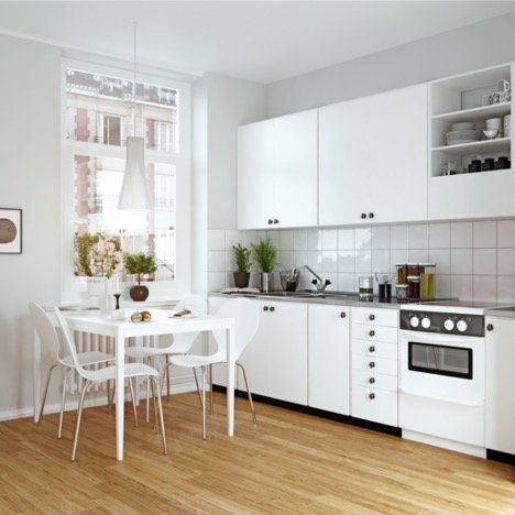 When you have a small space it's important to make use of any space you have. Open wall space is a great place to start. You should consider hanging hooks to store your pots and pans. If you are lacking in countertop space consider using a magnetic knife strip instead of a knife block. You can also store lids to pans here as well.